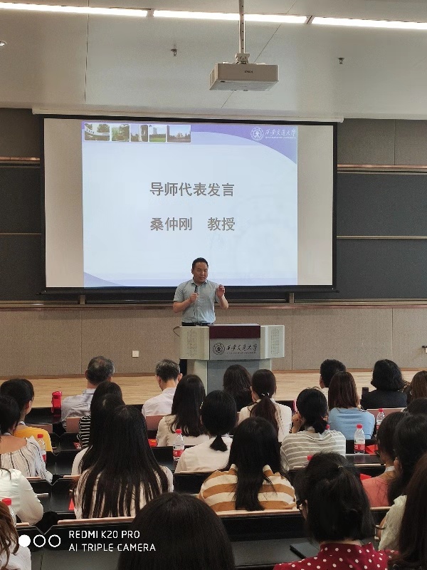 导师代表桑仲刚教授就自己的研究经历对新生们提出了宝贵的建议,他希望同学们能在新校区、新学期让自己新的学习生活有一个良好的开端。老生代表孙奇锋同学介绍了自己在生活和学习中成长的经验,鼓励学弟学妹们发挥自己的外语优势,积极投身语言服务活动,敢为人先,展示外语学子的风采。2019级新生代表周婵同学在发言时首先对在暑假还为学生热情服务的各位老师表示感谢,并对自己即将到来的研究生生活充满了向往,她代表新生表示在今后的学习和生活中一定会践行和传承西迁精神,严于律己、求实创新,收货一份实至名归的真才实学。