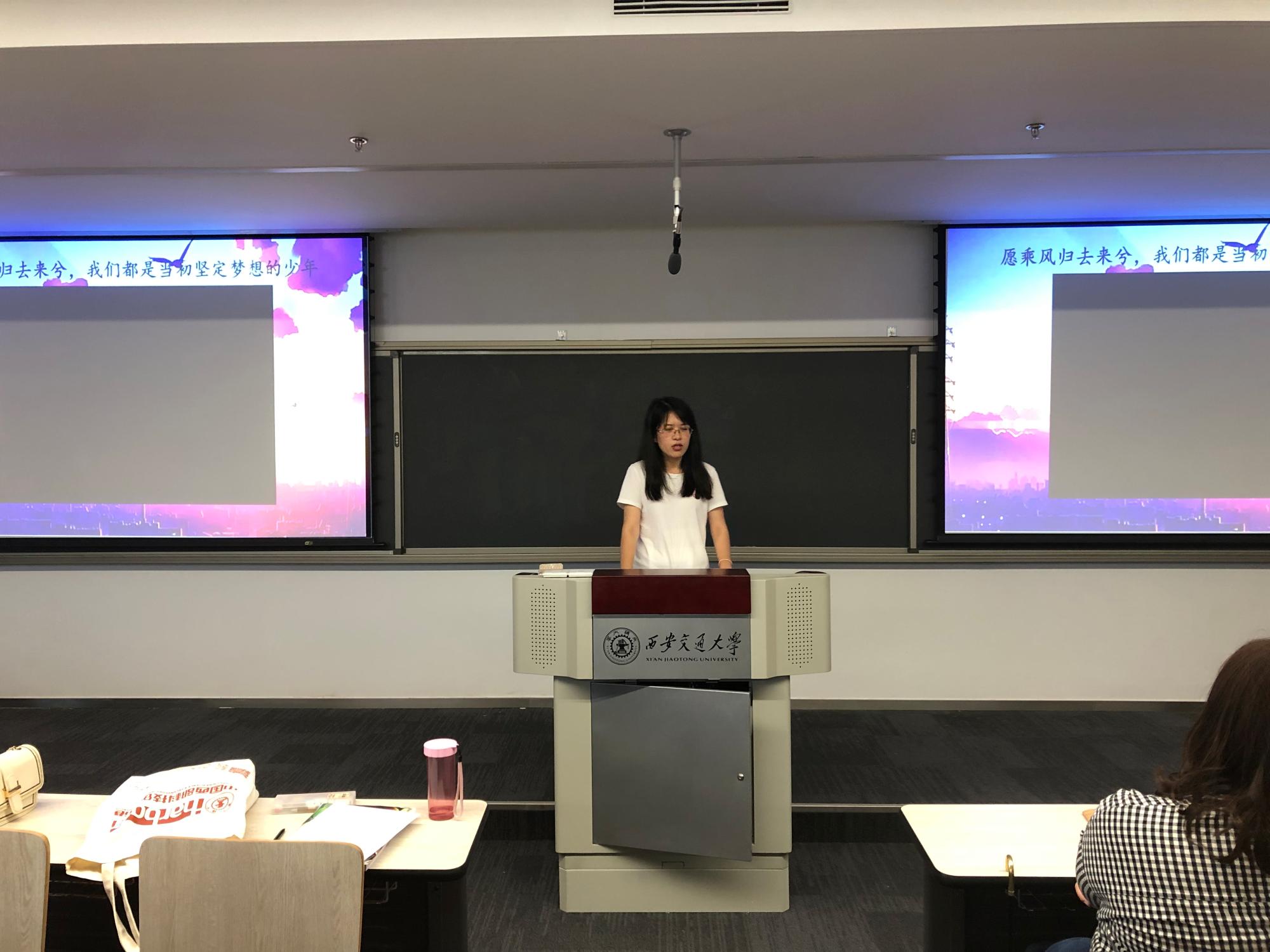 研究生二年级的王琦学姐,为同学们分享了她赴意大利GYLA培训班的珍贵经历。培训班的全称为联合国大学生夏季青年领袖精英班。王琦学姐详细地从学习、生活、文化考察等方面为我们讲述了此次实践活动,并把从培训班了解和学习到的青年思维、国际高度分享给了2019级的同学们。她的分享开阔了同学们的视野,激发了同学们积极参与国际组织实习和事务管理的热情。王琦学姐提到:“虽然此次培训班只有短短22天,但却是给了我极大影响的一次活动,因为我每天都在成长、在进步,每天都非常充实。”同学们也认真聆听,与学姐热烈互动,有同学提问了关于此类活动的信息获得渠道问题,学姐立即为大家推荐了相关公众号,帮助大家获得信息。