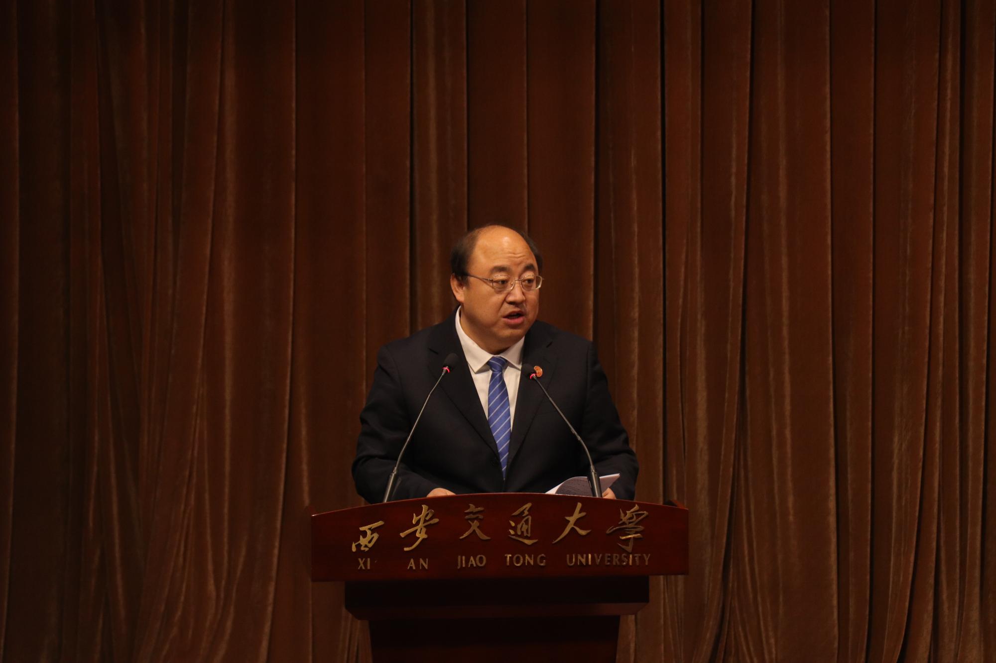 的优良传统和办学情况,表示中国特色社会主义进入新时代,西交大根据国家发展需求,教育科研不断取得显著成果,在国际组织人才培养方面积极探索创新。寄语参会学生拓展国际视野,不忘历史使命,为实现中华民族伟大复兴的中国梦而努力奋斗。