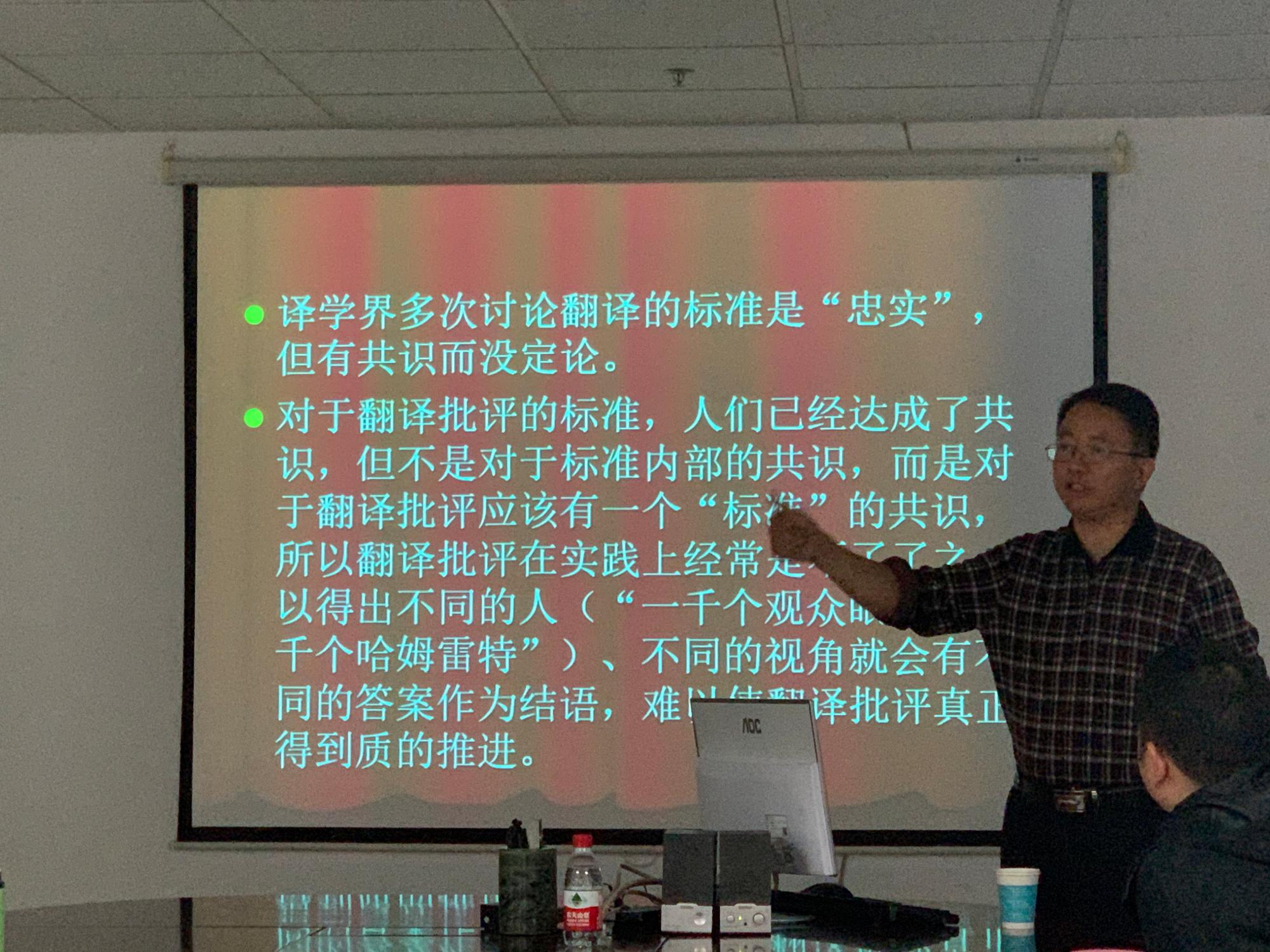 邀请,扬州大学教授、博士生导师周领顺开展题为“翻译批评的科学化和翻译的批评性研究”专题讲座,讲座由外国学院桑仲刚教授主持。