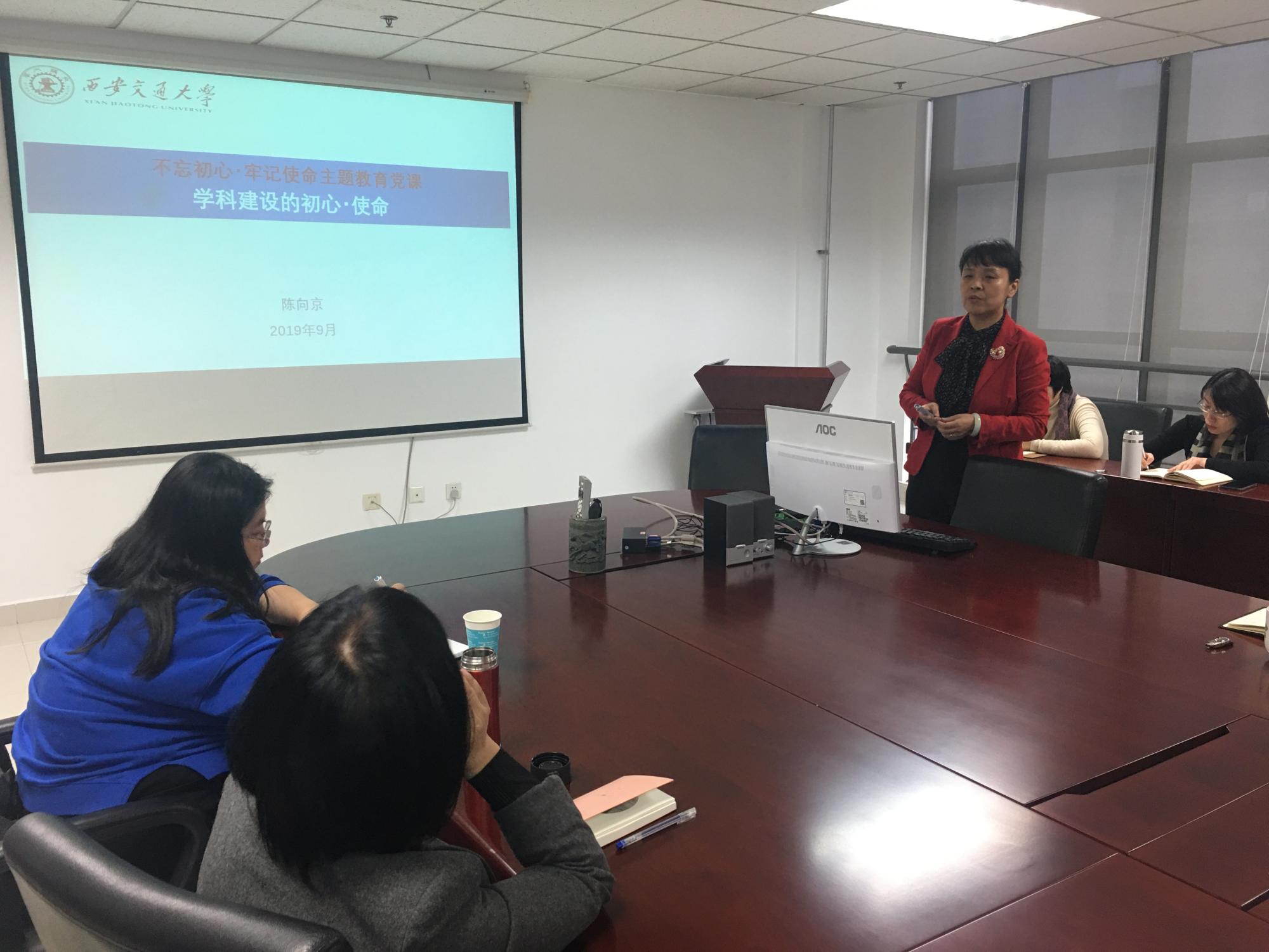 陈向京院长介绍了“不忘初心、牢记使命”主题教育期间开展学习情况及收获,强调了习近平总书记关于教育的论述对学科建设的重要指导意义,分享了世界名校语言学科发展经验,本次在学院开展学科建设调研的主题和方法,发现的问题及解决方案。