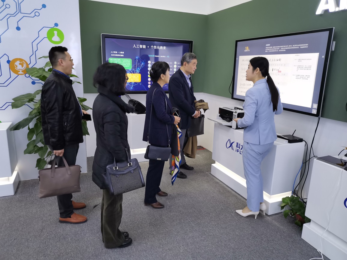 一行来到讯飞集团总部,参观了讯飞人工智能展厅,逐一了解最新的科技成果,详细询问了AI教育系统的功能和实际应用情况。