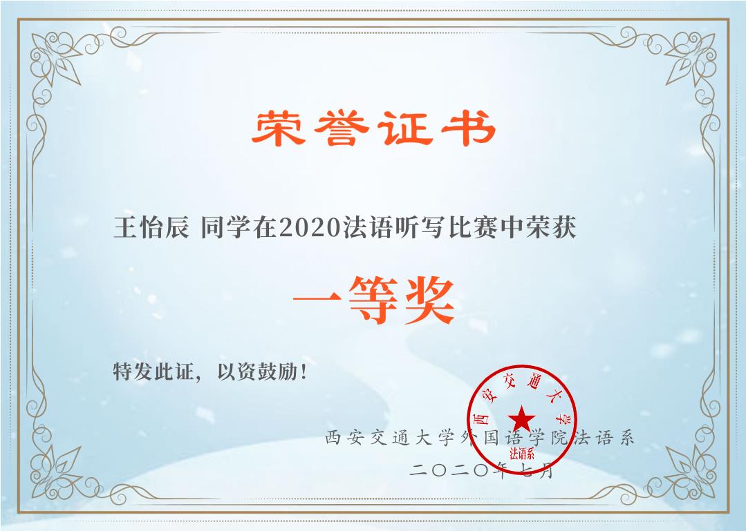 张欢同学(二等奖): 感觉一段时间不练习就会手生,听的时候专注度要很高,而且要努力把每一个音听清楚听准确,我今天就把lampe听成了langue,听完需要仔细检查一下动词变位和前后配合的问题,避免基础性错误。彼此当少年,莫负好时光!继续加油!