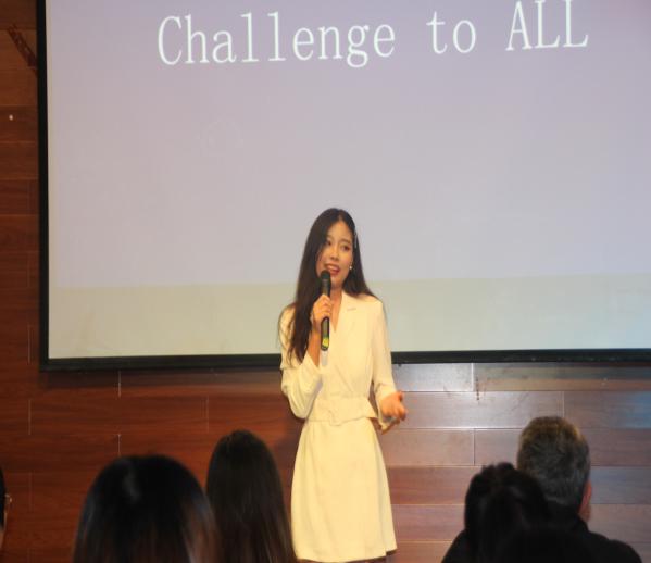 精彩纷呈的开幕式结束后,演讲比赛正式开始。本次比赛同时也是外研社杯英语演讲比赛校内选拔赛。比赛以“Challenge to All”为主题,参赛选手将自拟演讲小标题,进行时长3分钟的演讲。演讲结束后,再由评委老师进行提问。满分为100分,其中演讲表现占60分,回答问题占40分。