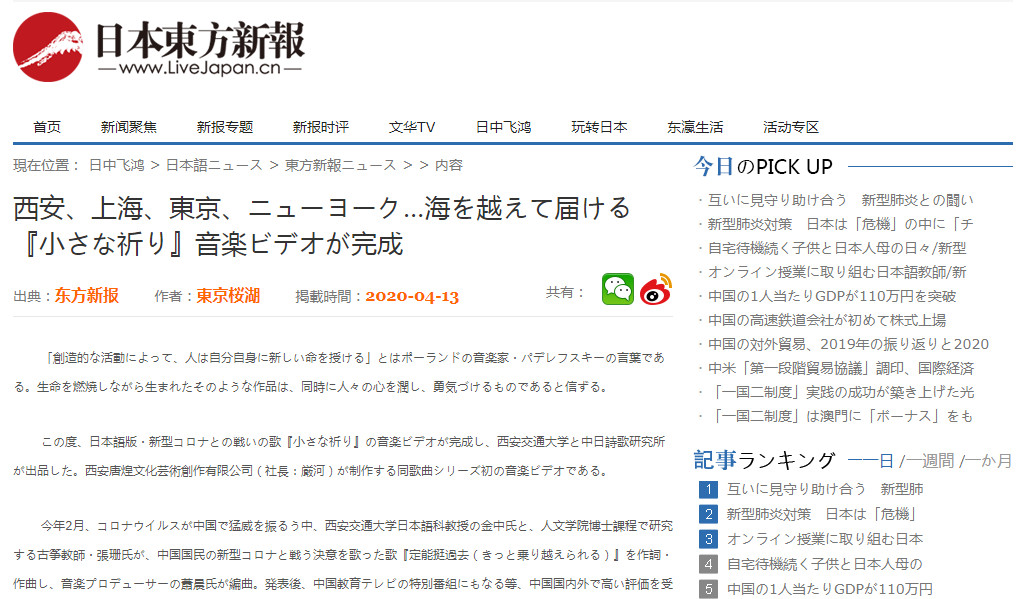 日语版抗击新冠疫情之歌《小小的祈祷》