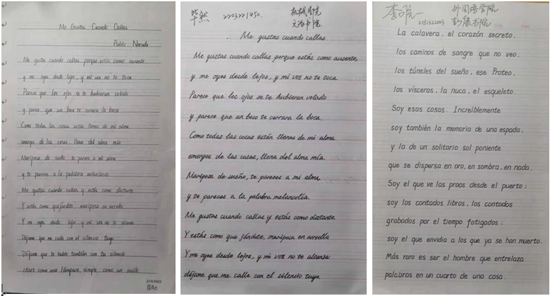根据书写的认真程度与美观程度,书写大赛共评出了15份获奖作品。透过这些作品,可以清楚地感受到同学们参加比赛的用心程度以及对西班牙语的热爱。
