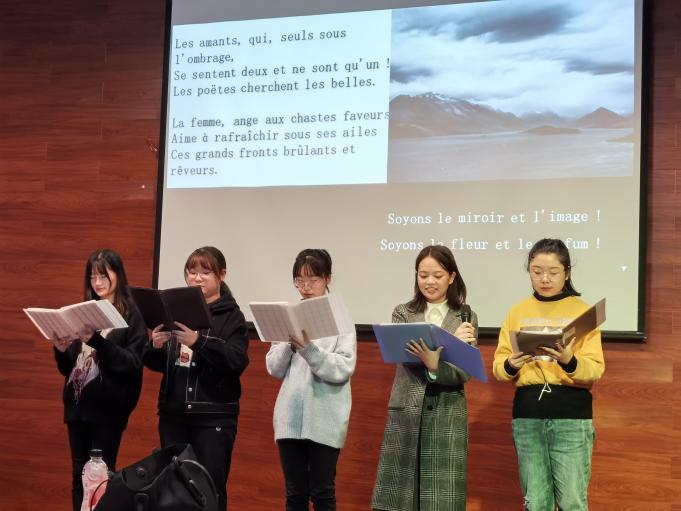 接下来的几场诗朗诵有多人朗诵也有双人朗诵,他们用叙述者沉缓的语调娓娓道来,充分表现了法语溪流般流淌的语调特点。