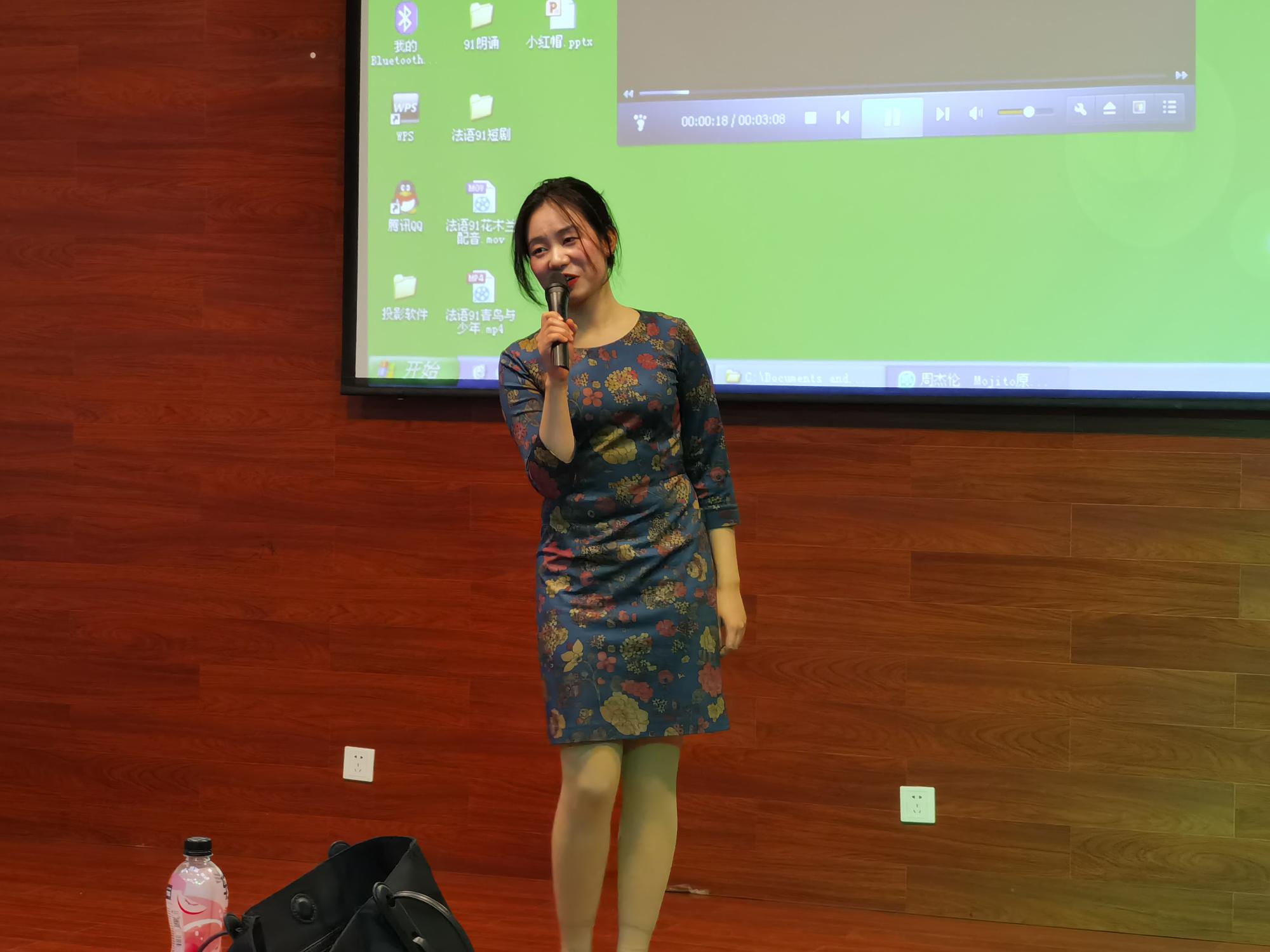 法语91班的张君越主持了本场大赛。此次比赛共演出话剧三场,诗朗诵三场,合唱两首,独唱一首以及配音秀两场。