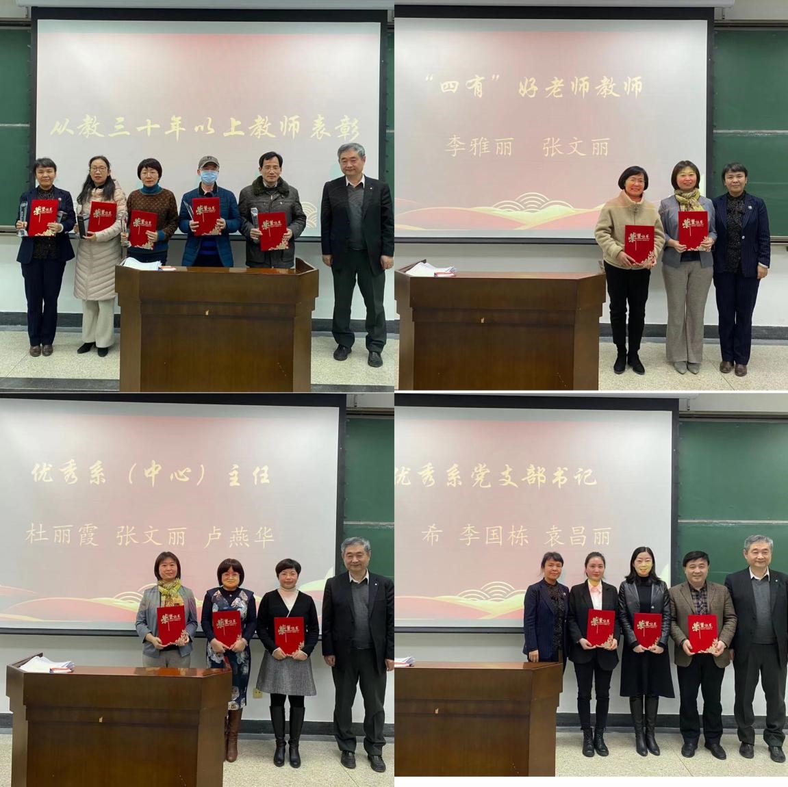 大会第二部分表彰2020年度先进个人,分别对从教三十年教师、“四有”好老师、优秀系(中心)主任、优秀党支部书记进行表彰,陈向京院长、张长安书记向获表彰的老师颁发证书奖杯。通过表彰大会进一步选树身边先进典型,激励学院广大教职工将“立德树人”作为第一要务,在教书育人工作中精益求精、追求卓越,为国家、社会培养更多的优秀人才。