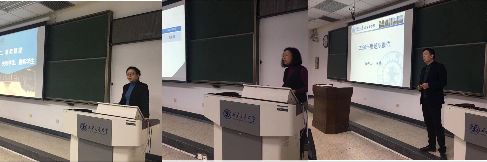 随后学院分党委副书记许明、副院长李莹、副院长王华分别就分管工作做了总结汇报。