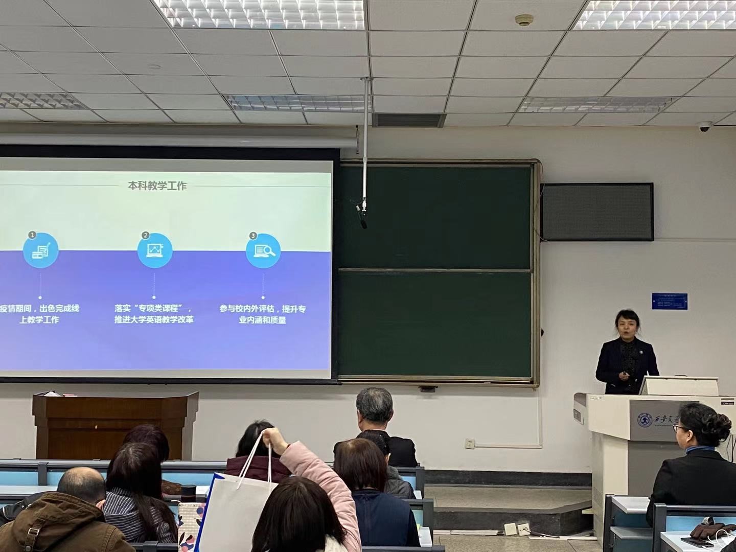 在主楼C105教室召开全院教职工大会。大会分两个部分,第一部分是学院领导班子述职述廉及民主测评,由分党委委员李国栋主持。第二部分是表彰环节,由副院长、工会主席王华主持。校巡察办副主任晁长征出席会议,并对领导班子和校管干部民主测评工作进行详细说明,同时要求学院进一步梳理责任落实举措清单,落实学院高质量发展。