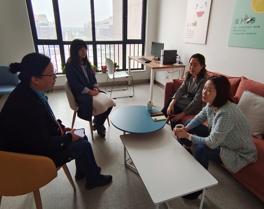 党委副书记许明老师、辅导员康晋楠老师和丁女士就学校与学院的发展状况进行了深度的交流和探讨。