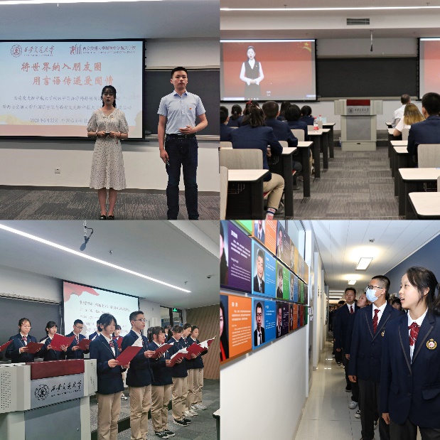 MTI教育中心副主任楚建伟从招生规模、培养方式、学科方向、专业设置、师资力量、导师队伍等方面对MTI教育中心进行了介绍,期待大家今后能成为学院的一份子。交大少年班英语老师龚颖从培养方案及能力培养方面向同学们介绍了交大少年班的教学情况,建议中学生要在今后的学习中不断培养自我管理能力和学习能力。MTI研究生代表乔凌江带大家回顾了新中国重要外交节点,向大家介绍了中国历任外交官,以及活跃在大众视野里的口译员,鼓励同学们为梦想努力拼搏。