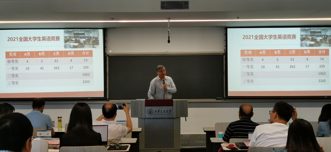 与会理事和专家共同听取了杨跃会长的总结报告和发言,杨会长对会议承办和协办单位给予了充分肯定,对与会者表示感谢,同时就陕西高等学校大学外语教学研究会2021年上半年工作情况进行总结,对下半年工作进行相关部署。