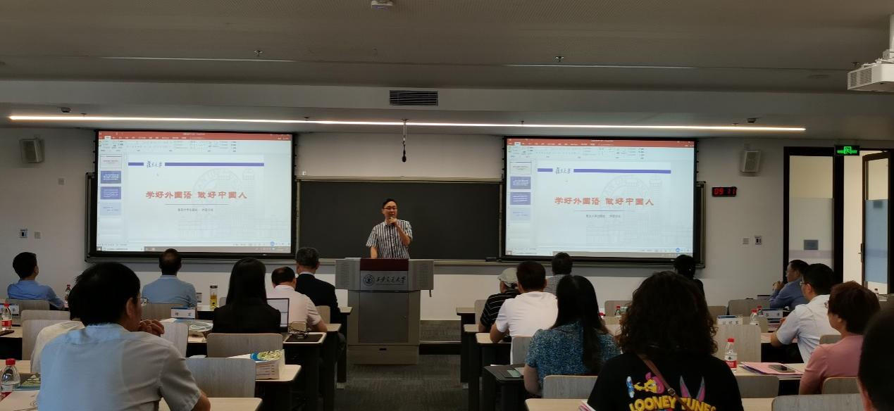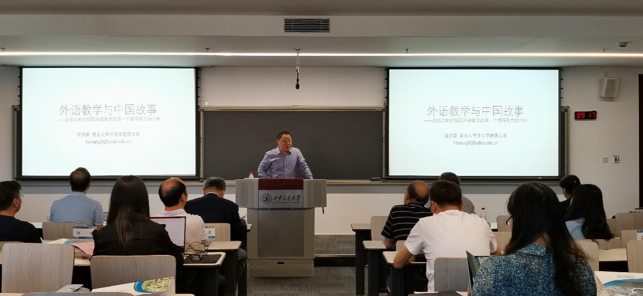 会议期间,复旦大学外文学院英文系教授、博士生导师汪洪章先生作题为“外语教学与中国故事——谈谈21世纪我国外语教学改革一个值得努力的方向”的讲座,为大家带来了一场学术盛宴。