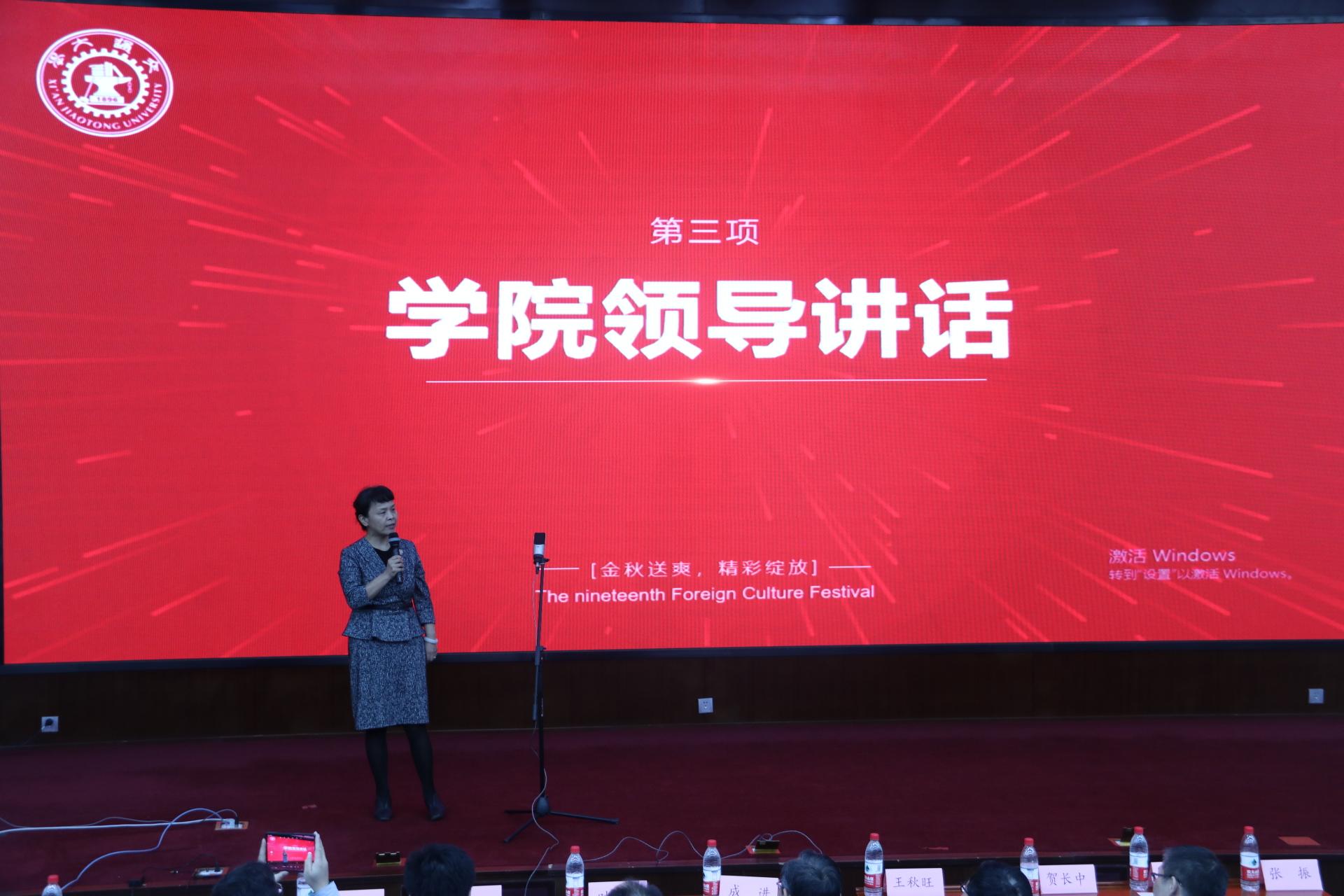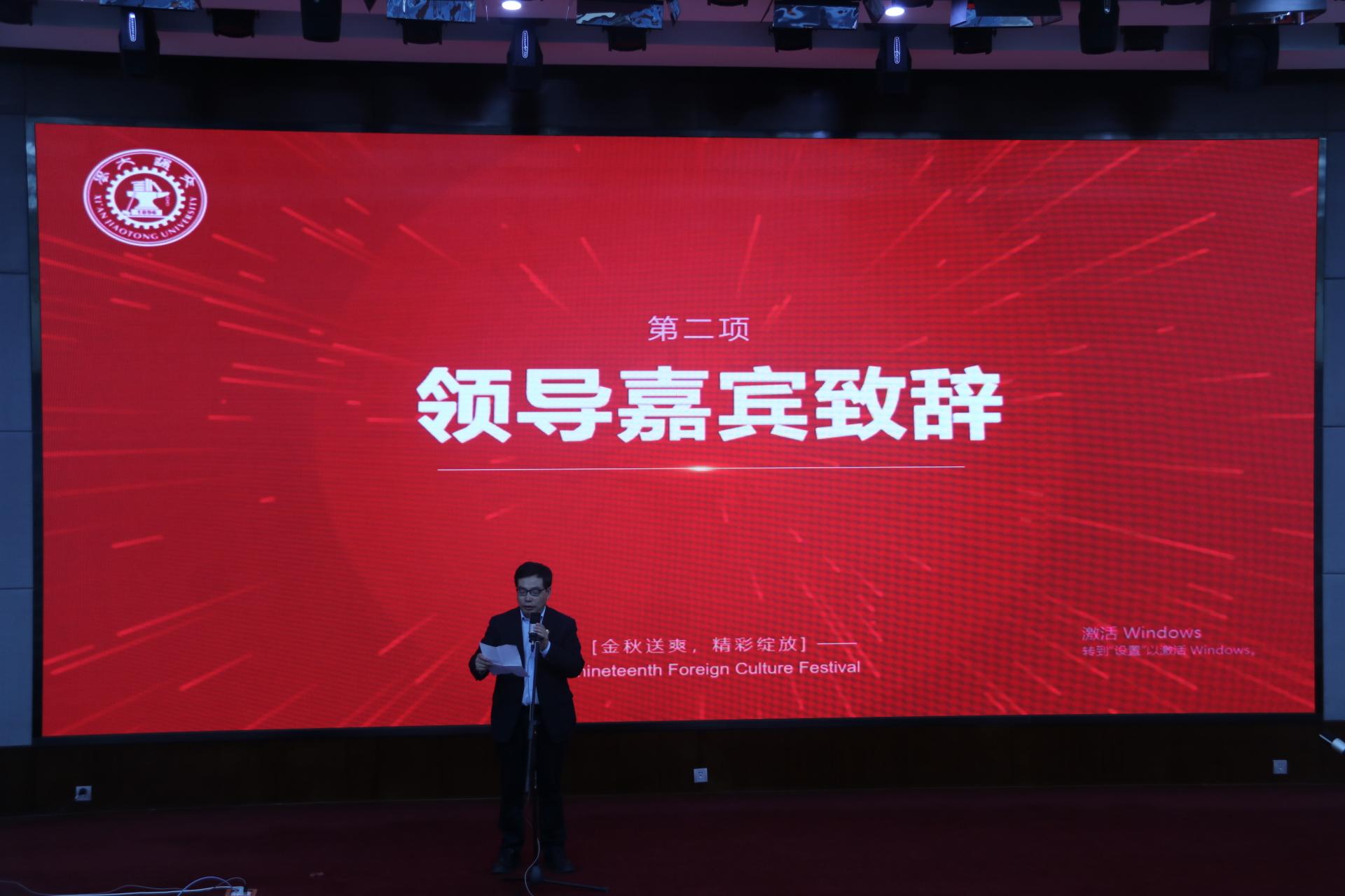 教务处处长、实践教学中心主任王秋旺上台致辞。他指出,今年是新中国成立的第72周年,同样也是交大人发扬西迁精神的重要时期。作为交大人,我们应该传承弘扬好西迁精神,做新时代的西迁精神传人,讲好中国故事和交大故事,把中华民族的优秀文化传播到世界各地。而金秋外语节,就是我们交大学子中外交流的良好平台。随后, 免费色情影片