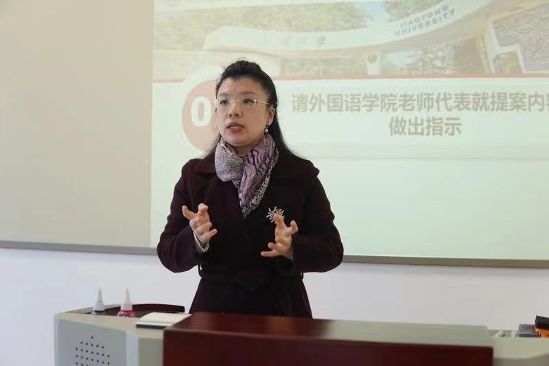 MTI中心主任吉乐老师就代表提案内容做出指示,指出代表提案的内容广泛,强调需要分层进行提案与解决。吉乐老师强调,任何同学有任何问题都可以从学院相关管理教师、学院中心层级领导、学院领导三级层面逐级向学院反映,解决学院内部所有问题。此外,吉乐老师针对代表提案中对已经解决、正在解决中以及未来将会解决的部分做出了指示,回答代表们关于跨年级交流、奖学金评定、实习资源、留学信息等多方面的问题。