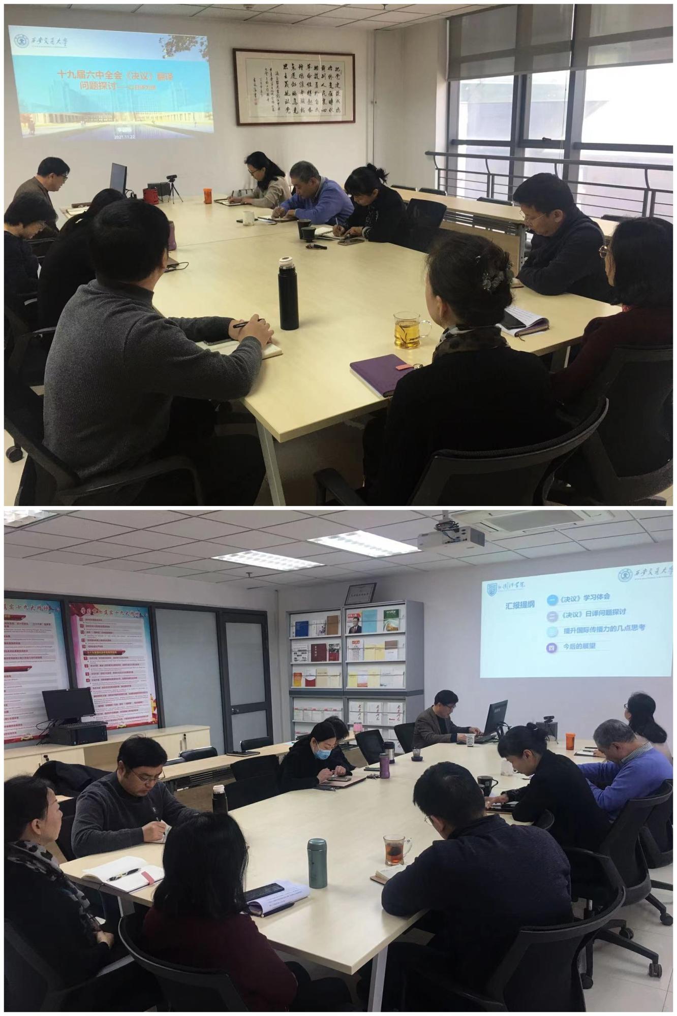 李国栋副教授分享《中共中央关于党的百年奋斗重大成就和历史经验的决议》学习心得,强调《决议》全面系统地总结了党百年奋斗的重大成就和历史经验,是纲领性文献、政治宣言和行动指南。在新的征程上,“赶考”远未结束,全党任重道远,需要不断增强“四个意识”、坚定“四个自信”、做到“两个维护”,团结一致向前进。随后交流《决议》翻译相关问题,并结合学院外语特色对提升我国国际传播力建设提出思考和建议。