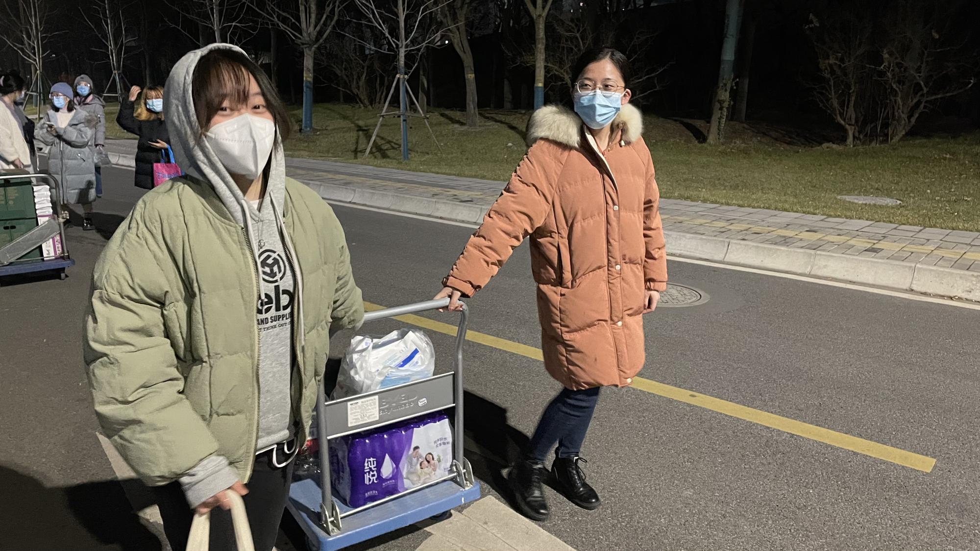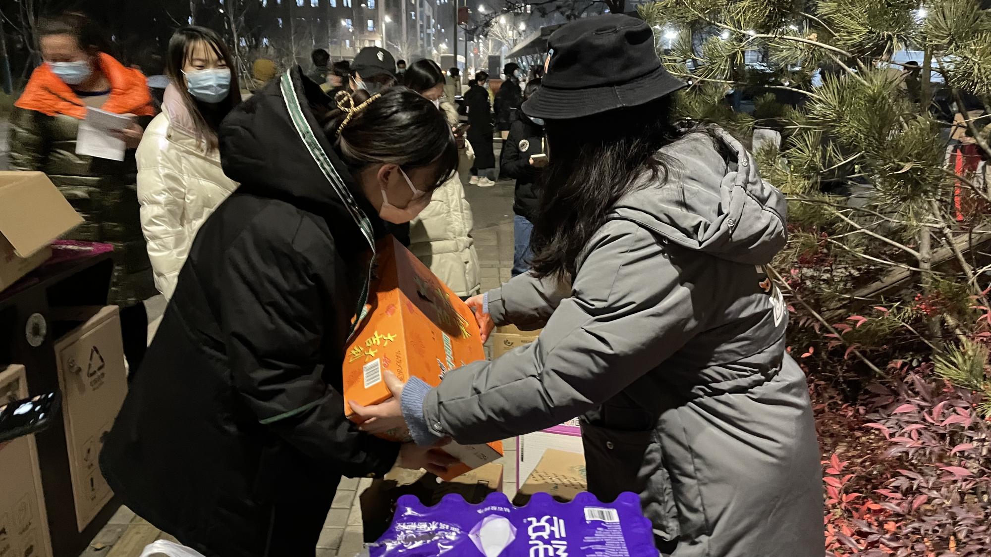 的志愿者们也发挥了非常重要的作用。在得知学院为大家采买了物资,需要同学搬运的消息后,大家积极报名,也有同学主动为封控区的同学进行无接触配送。兴华超市门口,志愿者们佩戴口罩,在保持安全距离的前提下迅速展开工作。