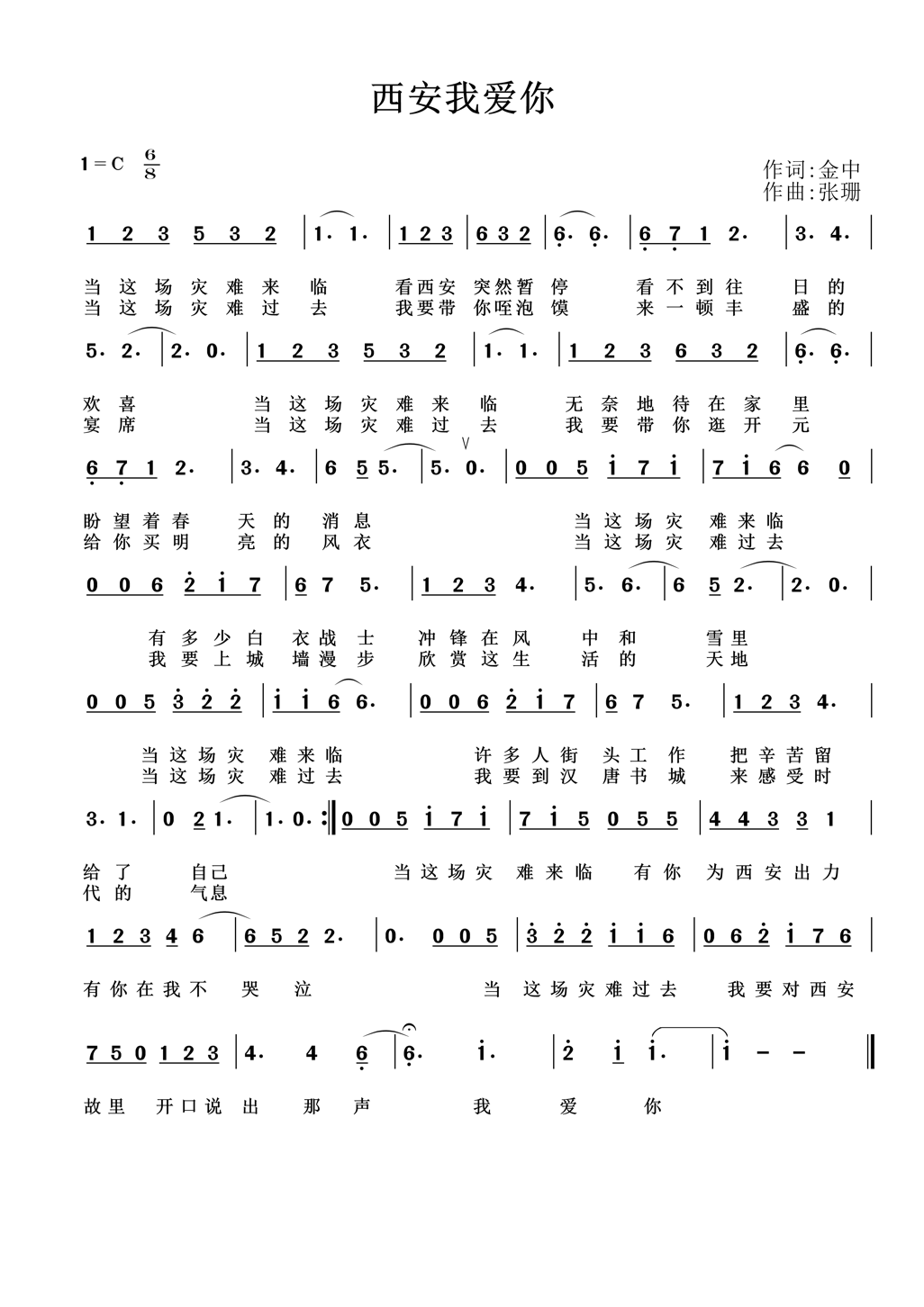 金中教授作词、人文学院博士生张珊谱曲演唱原创抗疫歌曲《西安我爱你》。
