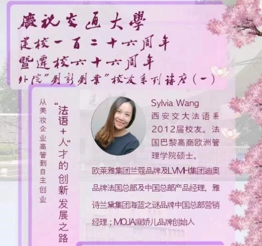 主办的“创新创业”校友系列讲座第一讲在线上举办。法语系2012届校友、MOJA麻娇儿品牌创始人王笑菡作题为“‘法语+人才’的创新发展之路——从美妆企业高管到自主创业”的讲座,法语系01班孙萌同学主持,外语学院师生参加了本次交流活动。