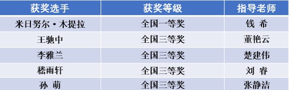 学生的风采与实力,最终获得高校组全国一等奖1项,全国三等奖4项的佳绩。