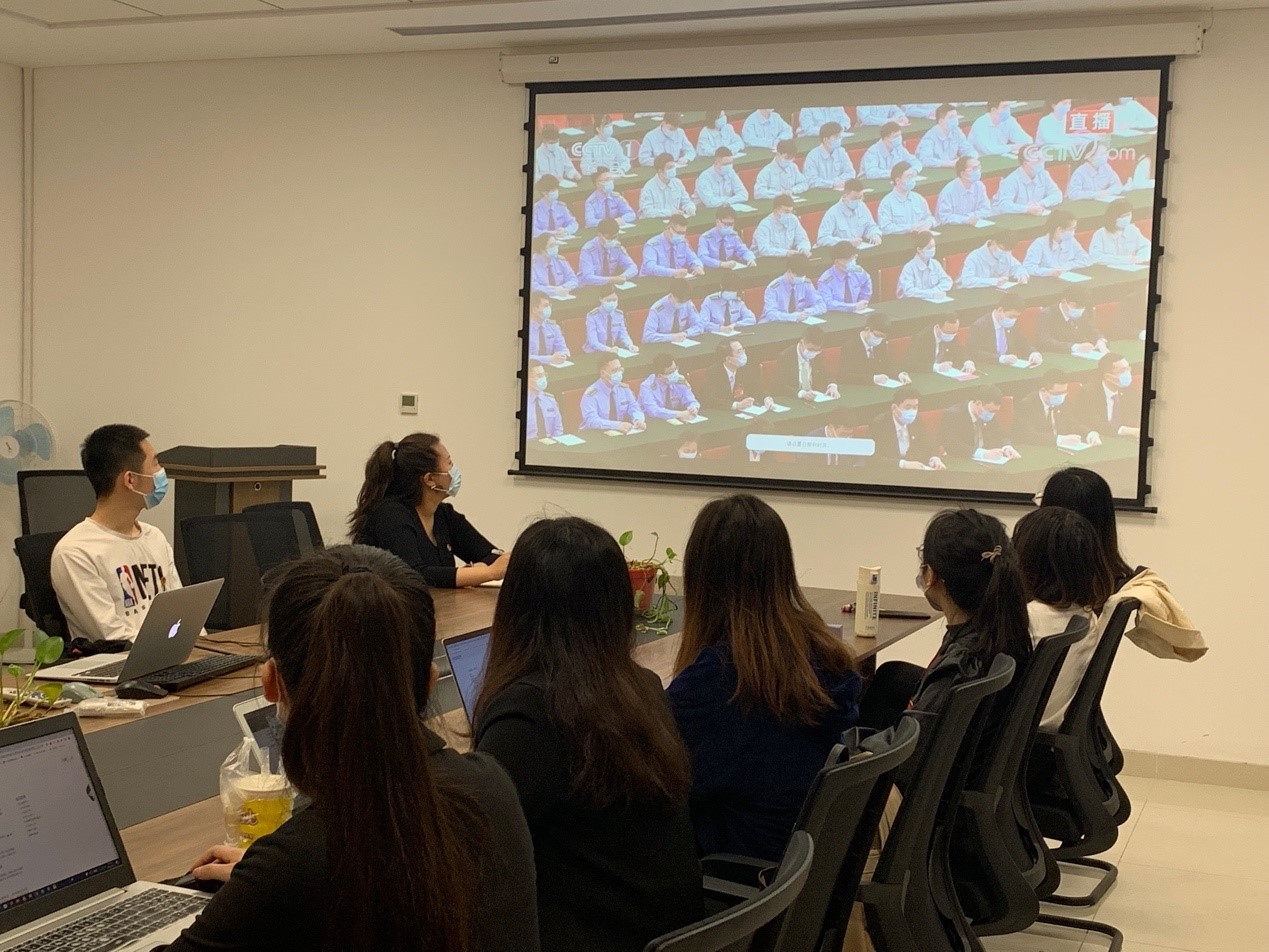 会议过程中,与会同学认真听讲并记录笔记,会后展开了热烈的讨论。 “人生万事须自为,跬步江山即寥廓。”值此重大历史节点,期待外语学子谨遵会议要点,积极响应时代的号召,不负国家和人民的期望。