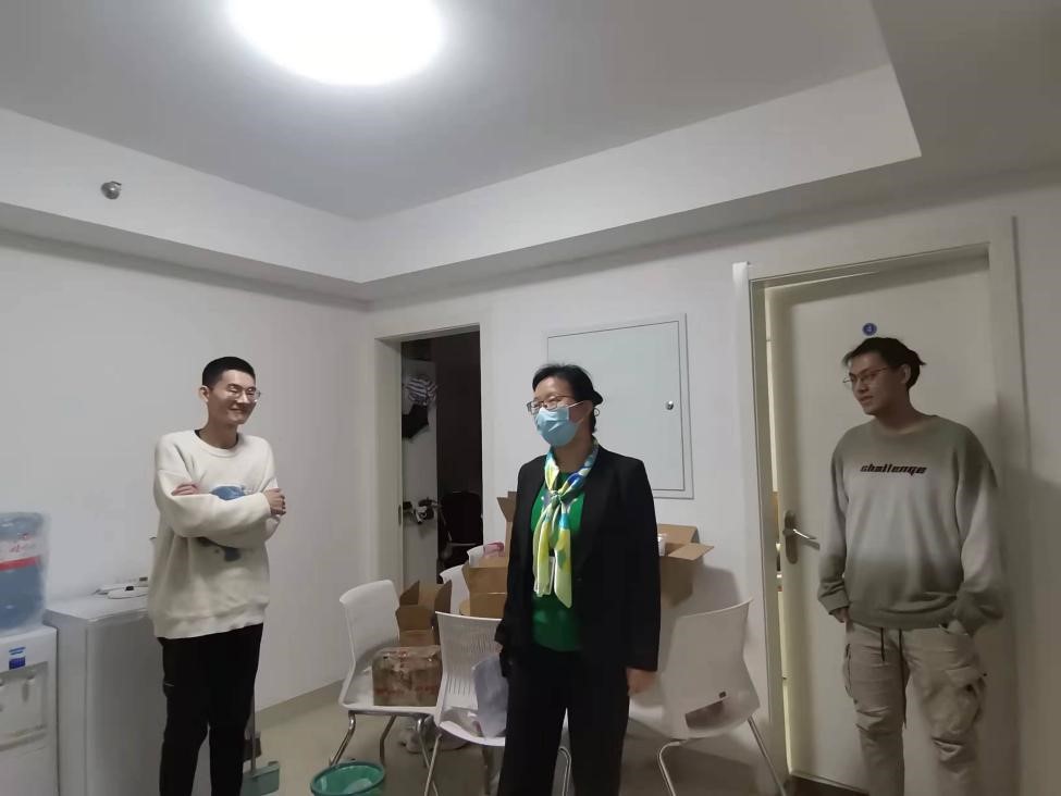 一进门,许明老师就亲切地询问同学们是否有学业、生活和家庭上的困难,叮嘱同学们遇到问题要与导师和学工老师积极沟通,学院一定会帮助同学们度过难关。对于安全问题,许明老师语重心长地提醒大家注意用电安全,做到人走电断,同时检查了是否使用危险违禁用品。根据近期的疫情形势,许明老师再次提醒同学们要遵守学校规定,按时进行核酸检测和健康每日报填写。