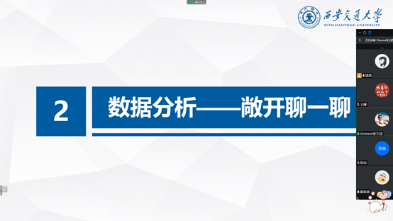 班会的第二个环节是“数据分析——敞开聊一聊”。本环节旨在让大家畅所欲言最近的烦心事儿,大家一起想想办法。尽管大家都各有所忧,包括期末大作业卡壳儿、如何克服畏难情绪、日本的国情和环境是否会对日语系博士生有影响以及博士交叉学科如何实现等等,在跟大家的热烈讨论后都找到了可行的解决方案或未来努力的方向。