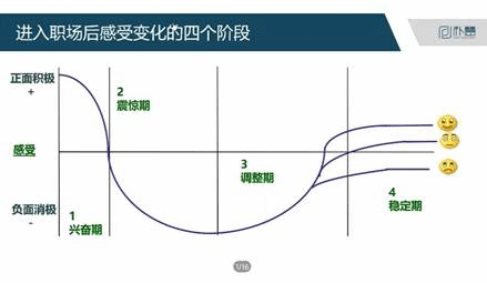 行健老师介绍了职场新人感受变化的四个阶段:一是兴奋期,二是震惊期,三是调整期,四是稳定期,每个不同的阶段都有不同的挑战,提醒同学们要尽早适应职场环境。