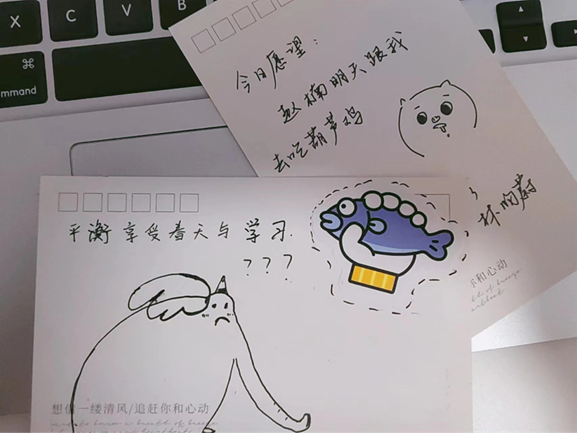 会后,支部成员互相交换心愿明信片,分享彼此的困扰。心理委员张春杰同志在心愿明信片中抒发了最近在时间管理上的困扰,例如很难维持专八复习与组织各项活动之间的平衡。团支部书记赵楠同志感同身受,两位同学互相倾诉,彼此鼓励,并积极探索解决问题的各种方法,焦虑的情绪得到了舒缓。还有同学写下了近期的小心愿,结成互助小组,帮助彼此完成心愿,支部成员间的友谊进一步加强。