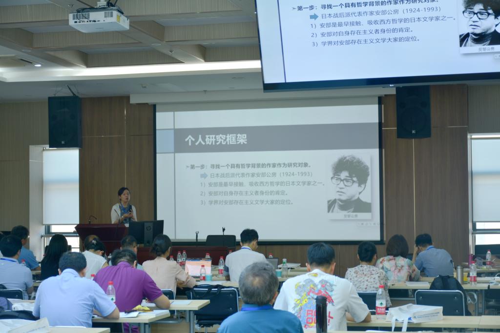 时渝轩副教授主持。主旨发言阶段,复旦大学王升远教授从日本作家火野苇平的小说《麦与士兵》入手,旁征博引地论述了帝国宣传的莫比乌斯环;东南大学陆薇薇副教授从性别研究等视角,阐述了日本女性学代表人物上野千鹤子的研究基础构建;北京外国语大学费晓东副教授从词汇加工研究、听力与口译研究、外语教学研究等三方面分享了相关领域研究选题与论文撰写的心得。