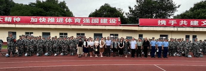 院长陈向京,党委书记张长安,党委副书记许明,副院长李莹,英语系主任彭凤玲,法语系主任寇媛媛,2023级本科生班主任曹浩煊、孟丽娜、孙莉、董艳云、赵葆珉老师以及组织员徐阳,来到学校田径场代表学院开展军训慰问活动。承训教官、学院军训带队教师朱嘉春以及2023级全体本科生参加了本次活动。