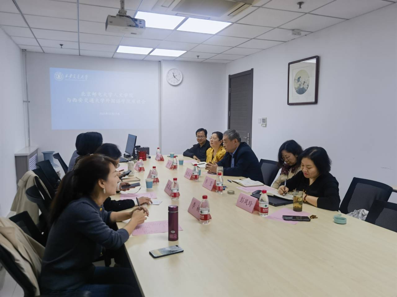 10月13日上午,北京邮电大学人文学院党委书记肖倪,副院长陈真真,外语系副主任李楠,党政办主任董培媛一行四人来访西安交大 免费色情影片
