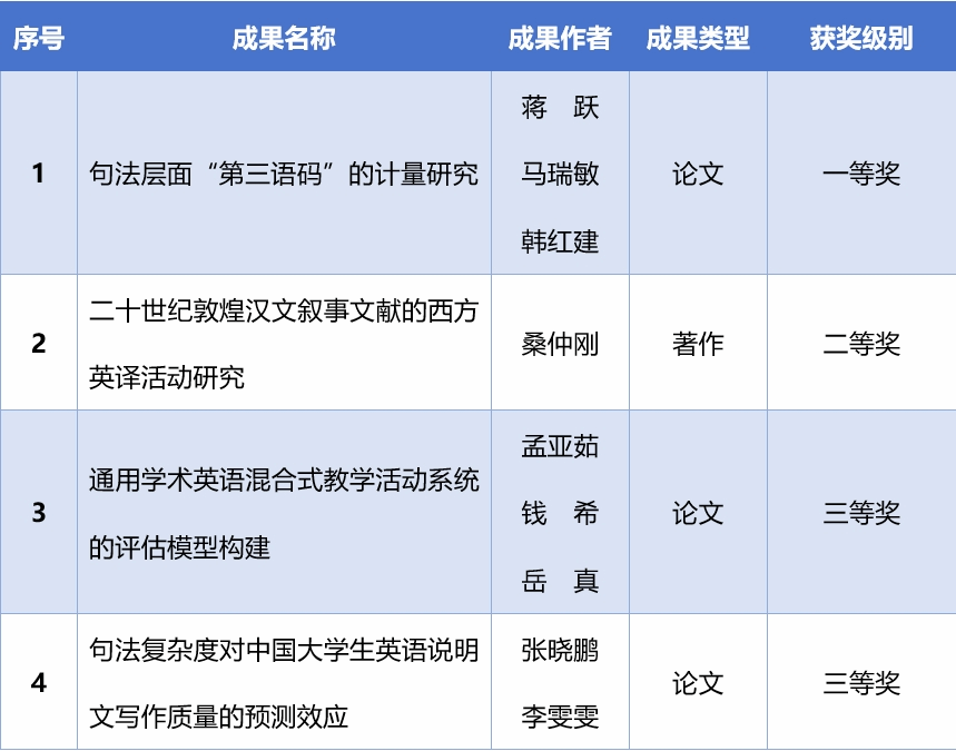 共有4项成果获奖,其中一等奖1项,二等奖1项,三等奖2项,实现了一等奖的突破。