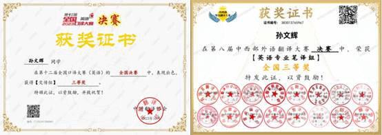 自入学以来,她踏实学习,不断钻研,研一课程绩点和综合排名位列班级第一,曾荣获学业特等奖学金、新生一等奖学金和逐梦二等奖学金。此外,她还积极参加学科竞赛,以赛促学、以赛代练,荣获第八届中西部外语翻译大赛三等奖、第十二届全国口译大赛三等奖、CATTI杯全国翻译大赛复赛三等奖、“外文奖”全国大学生英语阅读大赛二等奖、“BETT杯”全国大学生英语阅读大赛一等奖、《英语世界》杯全国大学生翻译大赛一等奖等奖项。“向下扎根,向上生长”是她的信念。
