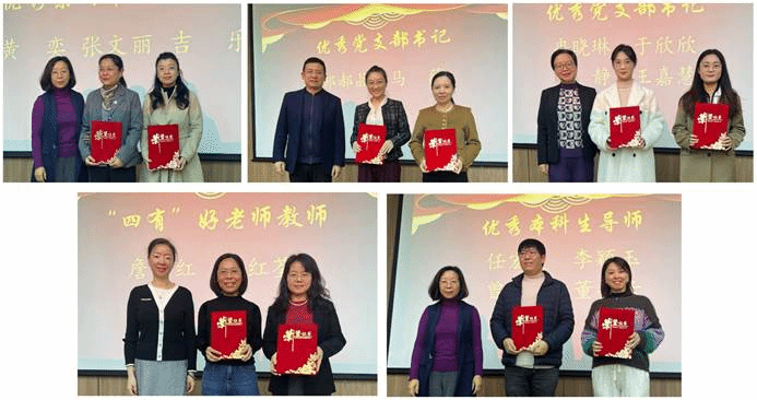 大会第二部分表彰2023年度优秀系(中心)主任、优秀师生党支部书记、优秀本科生导师、第六届“四有”好老师以及从教 30年教师、从教 40年教师,学院党政领导向获表彰的师生颁发证书、奖杯。学院通过表彰先进,发挥榜样作用,进一步号召全院师生团结拼搏、锐意进取,以更加昂扬向上的风貌共同推动学院高质量发展。