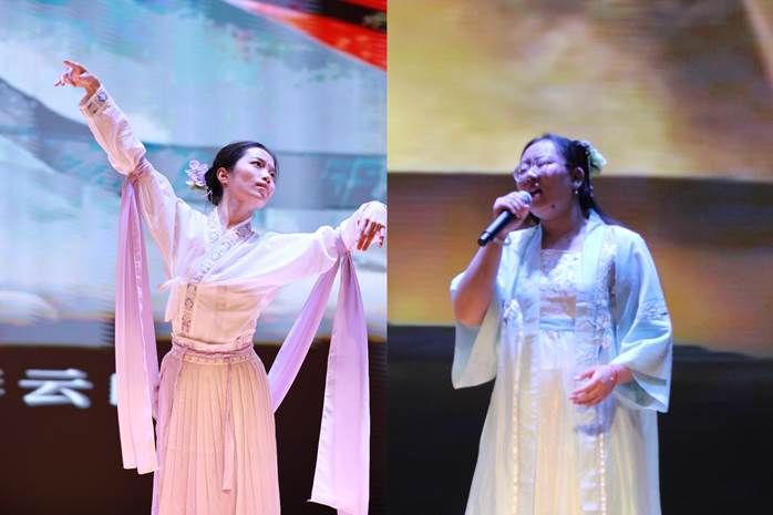 第二章“经年”在女声独唱的《我的梦》中徐徐展开,在平静又执着的曲调中,庄可意唱出成长的美好——“记得成长的对话,勇敢地说我不再等待”。赵蕊鑫等四位同学表演了爵士《Shake It》,肆意涂抹青春的色彩。随后,由张一鸣弹奏、张微主唱的吉他弹唱《Innocence》则带来了青春的回忆,淡淡描绘着在千变万化的世界中,我们需要守护的初心。皮镝影等五位同学的爵士《Gods》坚韧有力,仿佛是一幅勇往直前、逆风翻盘的磅礴卷轴。而接下来,周芳菁和赵晗彤带来的是国风歌舞《浮光》,优美地演绎了浮光掠影里的历史与国色,拉上了第二章的帘幕。
