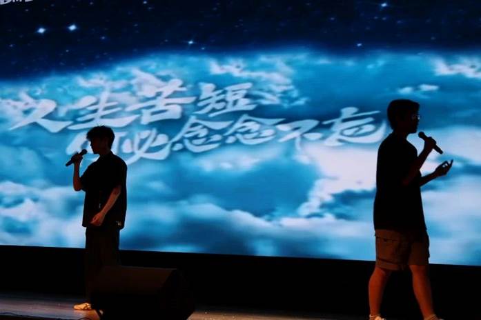 张雅楠和杨凯兴用一曲《归零》,歌唱出对未来的懵懂期待和坚定信念,在这激扬振奋中,第四章“旷野”开始了。高君恒和潘轶扬合唱《消愁》,道出人生辛酸和超脱自然,一杯敬过往,一杯敬明天。王越等五位同学的爵士舞《Magnetic》则动感、明快,可爱人生,精彩无限。随后,温帅为我们带来《阿刁》,不急不缓,唱的是阿刁的桀骜与自由,亦是我们的遗憾与期盼。杨斯钫等七位同学则表演了爵士舞《Girls Never Die》,生气勃勃而又铿锵有力,在人生这片旷野里,永不言弃。