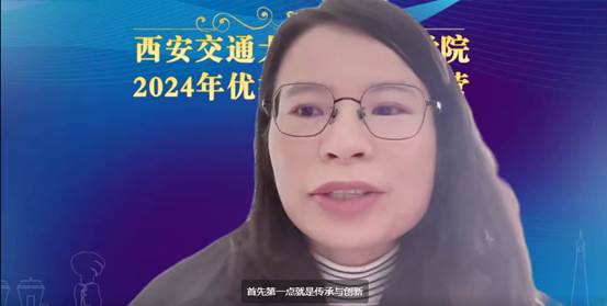 杨文纯老师作为导师代表致辞,她表示交大为同学们提供了开放、包容、尊重的学术氛围和良好的学术科研平台。她以自己所指导的博士生的科研情况为例,鼓励学生在科研过程中重视交流与合作,将个人发展和国家需求相结合,将科研工作和社会发展相结合,未来在科研工作中实现更大的自我价值。