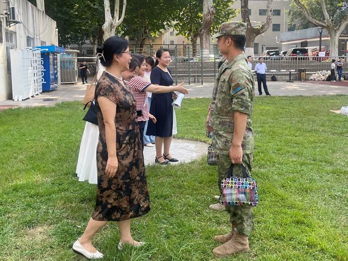 随后,许明副书记、彭凤玲主任和曹红荃副主任为书记为承训教官、带队教师发放慰问品并表达了感谢。各位老师们也为全体同学发放慰问品并表示了关心和慰问。