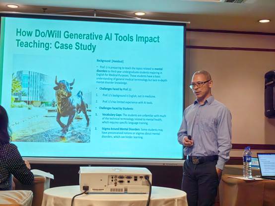 11月1日晚,本次会议的工作坊环节在西安金花大酒店拉开帷幕。现场座无虚席,三场紧跟学术前沿的工作坊同时进行。美国南佛罗里达大学Tony Xing Tan教授主讲了“Harnessing the Power of AI in ESP Education”工作坊; 免费色情影片