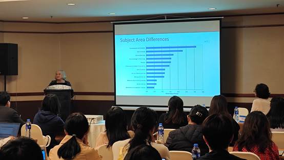 的杨瑞英教授以“The Discipline of ESP: History and Developments Through its Flagship Journal ‘English for Specific Purposes’”为题,回顾了ESP作为教学改革运动的起源和发展,重点分析了《English for Specific Purposes》期刊对该学科的重要贡献,展示了ESP领域的研究趋势。