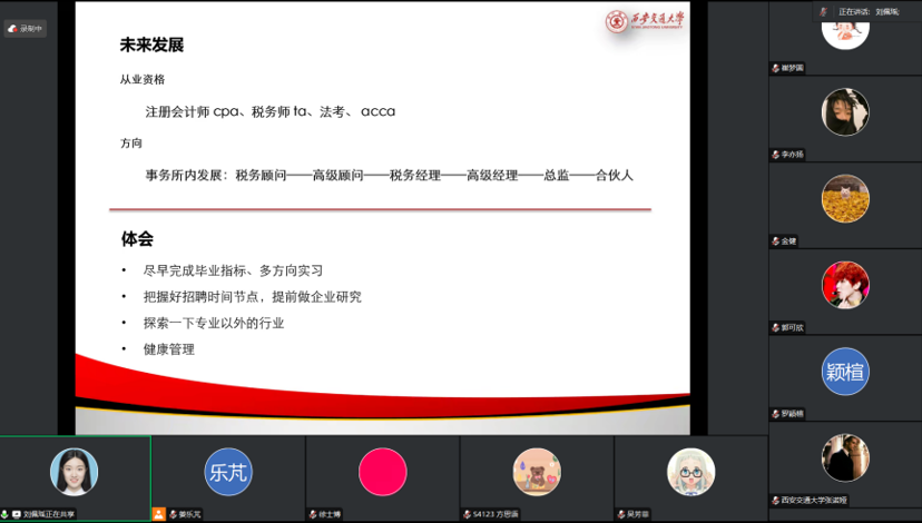 研究生会指导下,12月1日20:00,硕3123班党支部成功举办了职业生涯规划系列讲座第二十四期:——“会计师事务所”专题交流分享会。