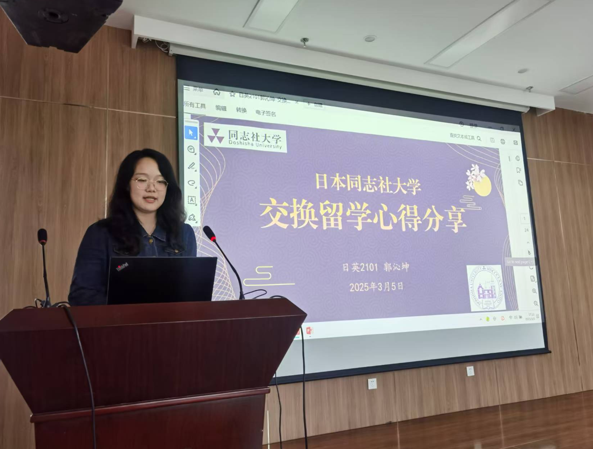 郭沁坤同学分享了在日本同志社大学的学习与生活体验。她分享了课堂上的精彩瞬间和日常食宿情况,详细介绍了留日期间的生活注意事项,科普了留学生必备手续的办理流程,并分享了在日本生活旅行的心得体会,为同学们提供了实用的参考建议。