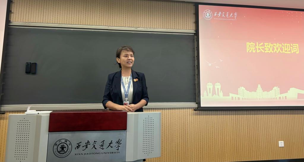 2023级硕士生王嘉慧作为高年级研究生代表,分享了个人读研期间的学习体悟,鼓励新生珍惜在交大校园的求学时光,积极尝试、主动交流,结合个人实际尽早确定职业发展规划,做到情绪自洽,平衡好科研学习和日常生活。