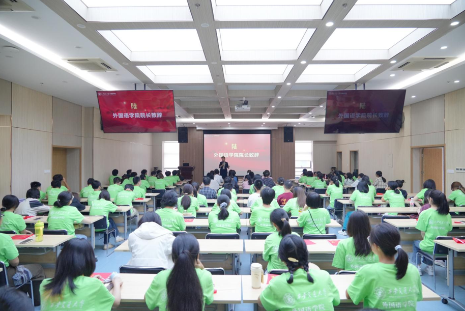 院长陈向京教授致辞。她希望同学们能够尽快熟悉适应大学阶段的学习节奏,坚定专业自信,提升科研能力。她强调,作为外院的学生,需要正确认识语言的工具性、人文性与科学性,提醒同学们要平衡分数与成长,鼓励学生用好外院优质的国际交流平台拓宽视野。陈院长以“学贯中西,精勤求知,外联五洲,语通四海”的院训寄语新生,祝同学们在交大的四年学有所成。
