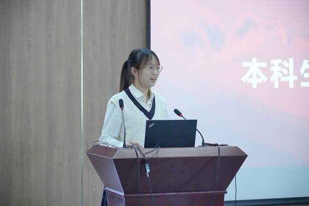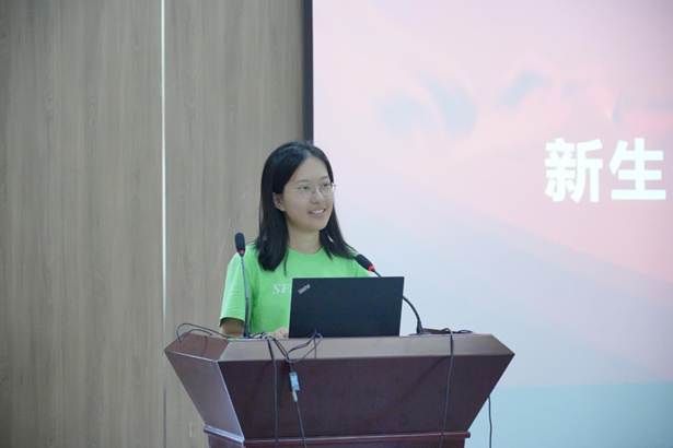 接下来,新生代表顾天宇同学分享了她对未来的规划与畅想。作为“交二代”,她也曾同其他同学们一样“迷茫”过,但是她很快就自己从“困惑”转变到“坚定”。她深切感知到学校为同学们提供了链接世界的平台,而语言更是超越文化融合的钥匙。她号召同学们一起热烈拥抱西交外院的星辰大海,努力长成参天大树,形成葱郁森林。