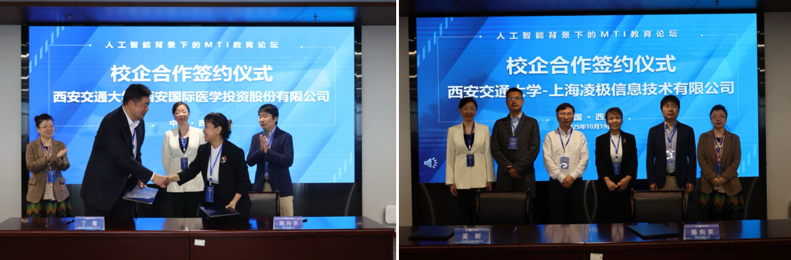 分别与西安国际医学投资股份有限公司、上海凌极信息技术有限公司举行了简短而隆重的校企合作签约仪式。