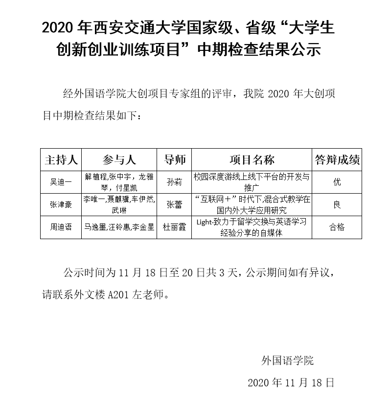 2020年 免费色情影片 国家级、省级“大学生创新创业训练项目”中期检查结果公示